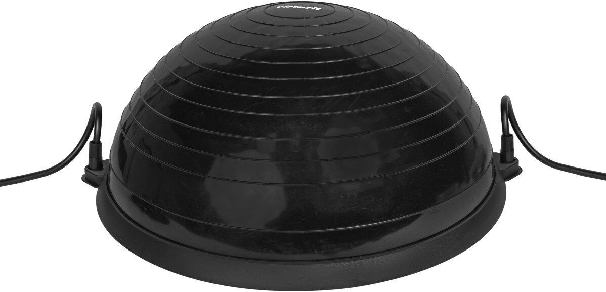 Trenažér má konstrukci polovičního fitness míče o průměru 58 cm, který je pevně usazen do robustní plastové základny. Jeho nafouknutí lze snadno upravit přiloženou pumpou. Díky odolnosti a nosnosti až 150 kg poskytuje bezpečnou oporu i při dynamickém tréninku.
