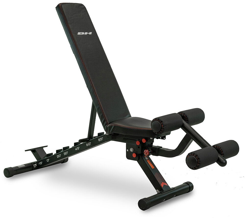 BH FITNESS Adjustable Weight Bench je polohovací posilovací lavice vhodná především pro cvičení s jednoručními činkami, díky sklopení zádové opěrky do negativního sklonu se změní v šikmou lavici pro cvičení břišních svalů. Ocelová konstrukce z odbélníkových profilů, odolné čalounění a mimořádně všestranné použití díky velkému rozsahu polohování zádové opěrky, sedáku a opěrky nohou.
