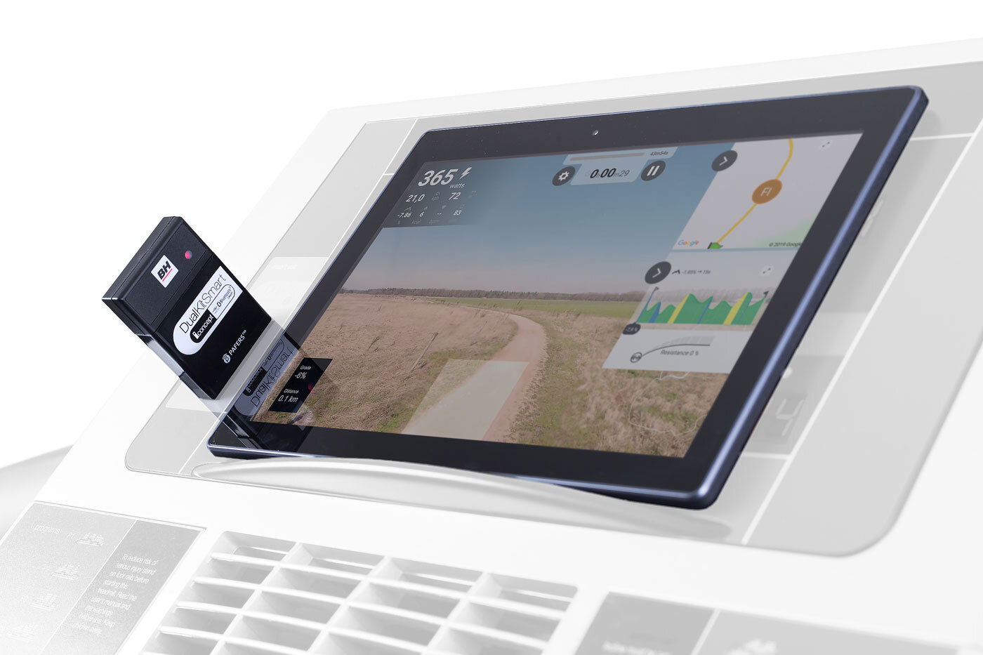 BH Fitness F2W DUAL nabízí připojení přes systém DUAL KIT, který umožnuje práci s různými aplikacemi na vašem chytrém telefonu případně tabletu. Tento systém není součástí balení, ale je možné si ho dokoupit na našem e-shopu. Více informací o těchto aplikacích si můžete přečíst v našem článku.