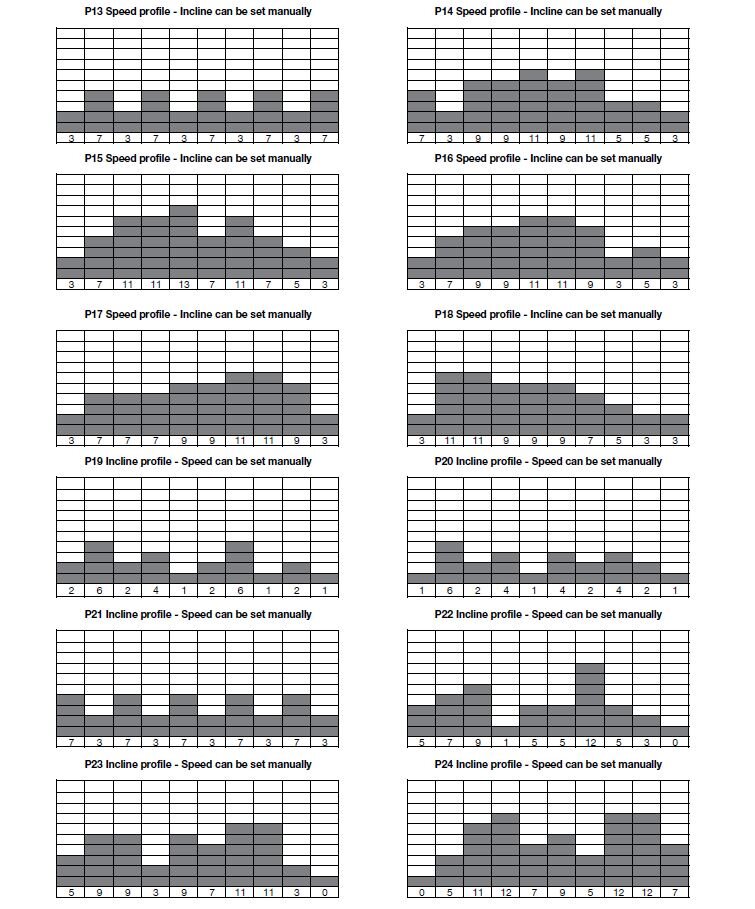 - Programové režimy Přednastavené profily trati, Program řízený tepem HRC, Zadání cílových hodnot, Nastavení rychlosti, příp. sklonu ručně tlačítky, Uživatelské programy