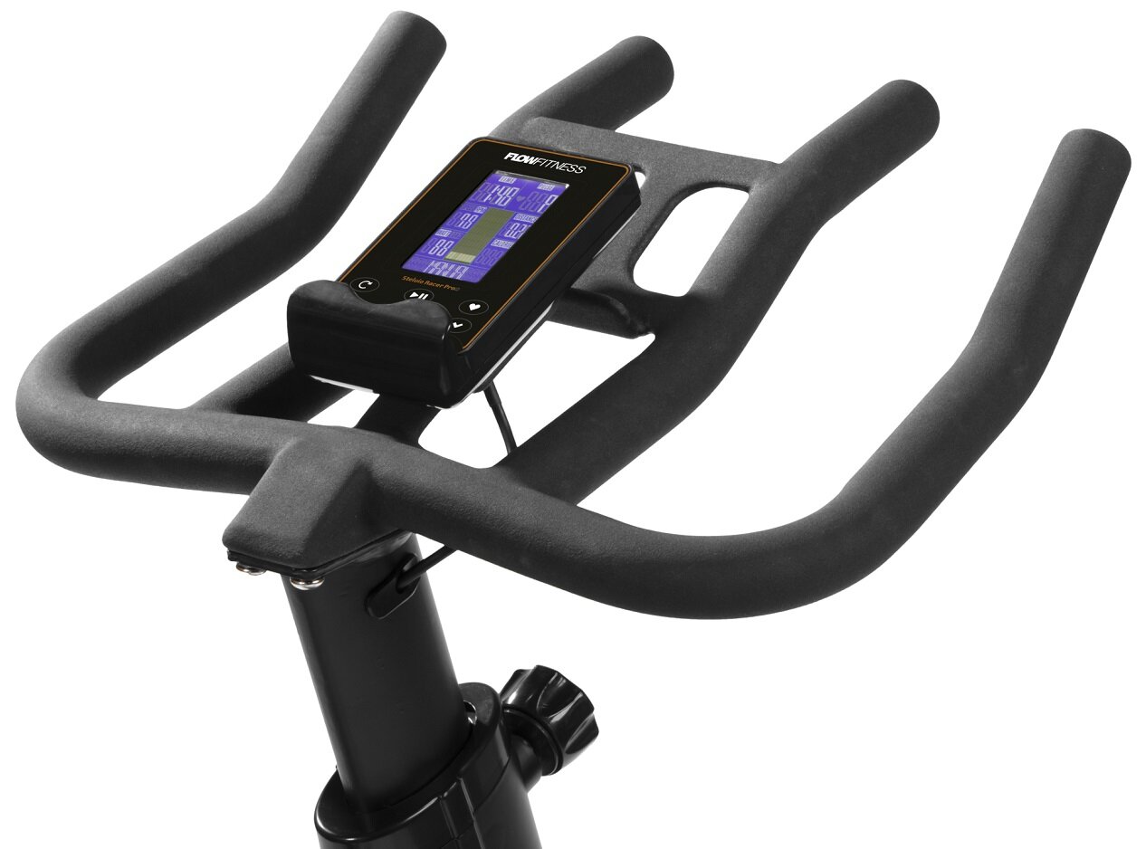 Cyklotrenažér Flow Fitness Stelvio Racer Pro i disponuje přehledným počítačem s držákem na tablet/smartphone, bluetooth přijímačem a bohatou programovou nabídkou. Jeho součástí jsou i transportní kolečka, vyrovnávače nerovnosti a držák na lahev.