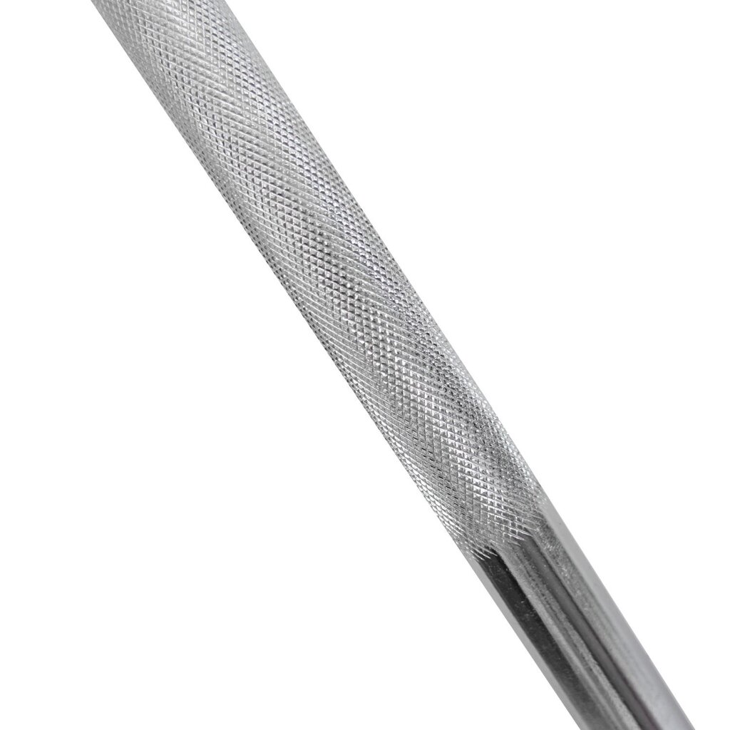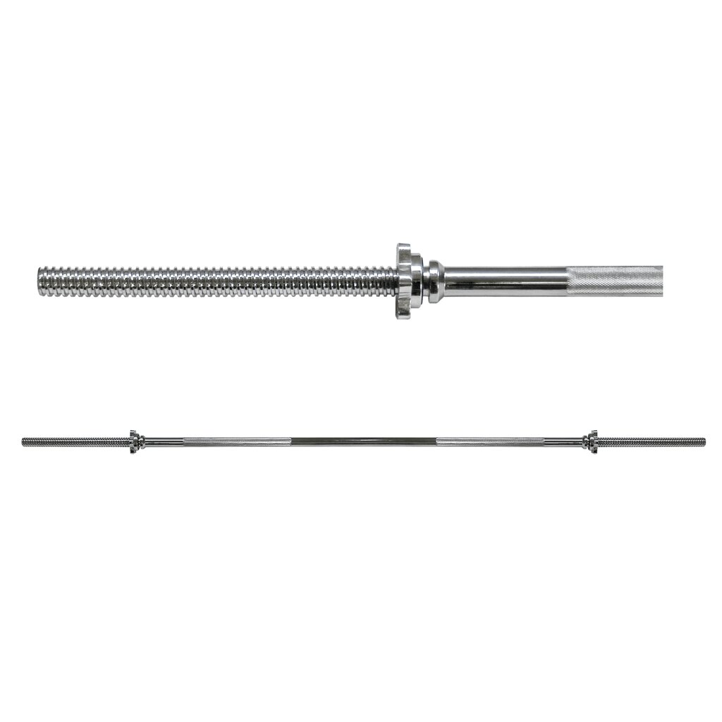 Hřídel je vyrobena z pevné oceli s odolnou chromovanou povrchovou úpravou, která chrání proti korozi a dodává profesionální vzhled. Úchopová část je opatřena rádlováním pro jistý a bezpečný úchop i při vyšší zátěži. Součástí balení jsou dva závitové uzávěry s gumovou vložkou, které zajišťují pevné dotažení kotoučů a eliminují jejich uvolnění během cvičení.