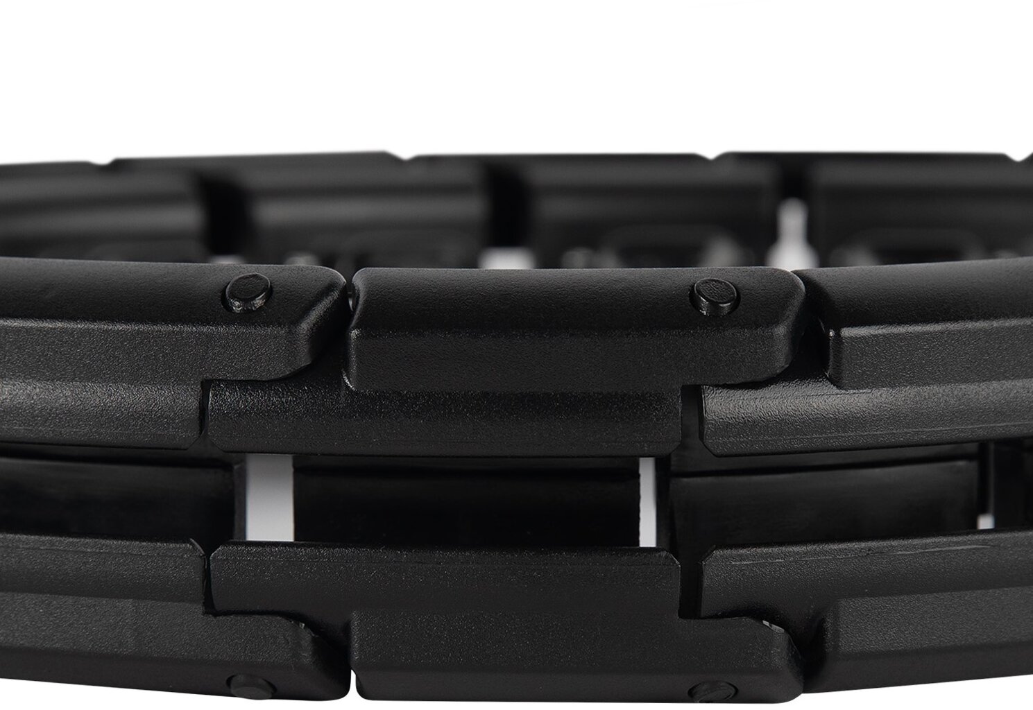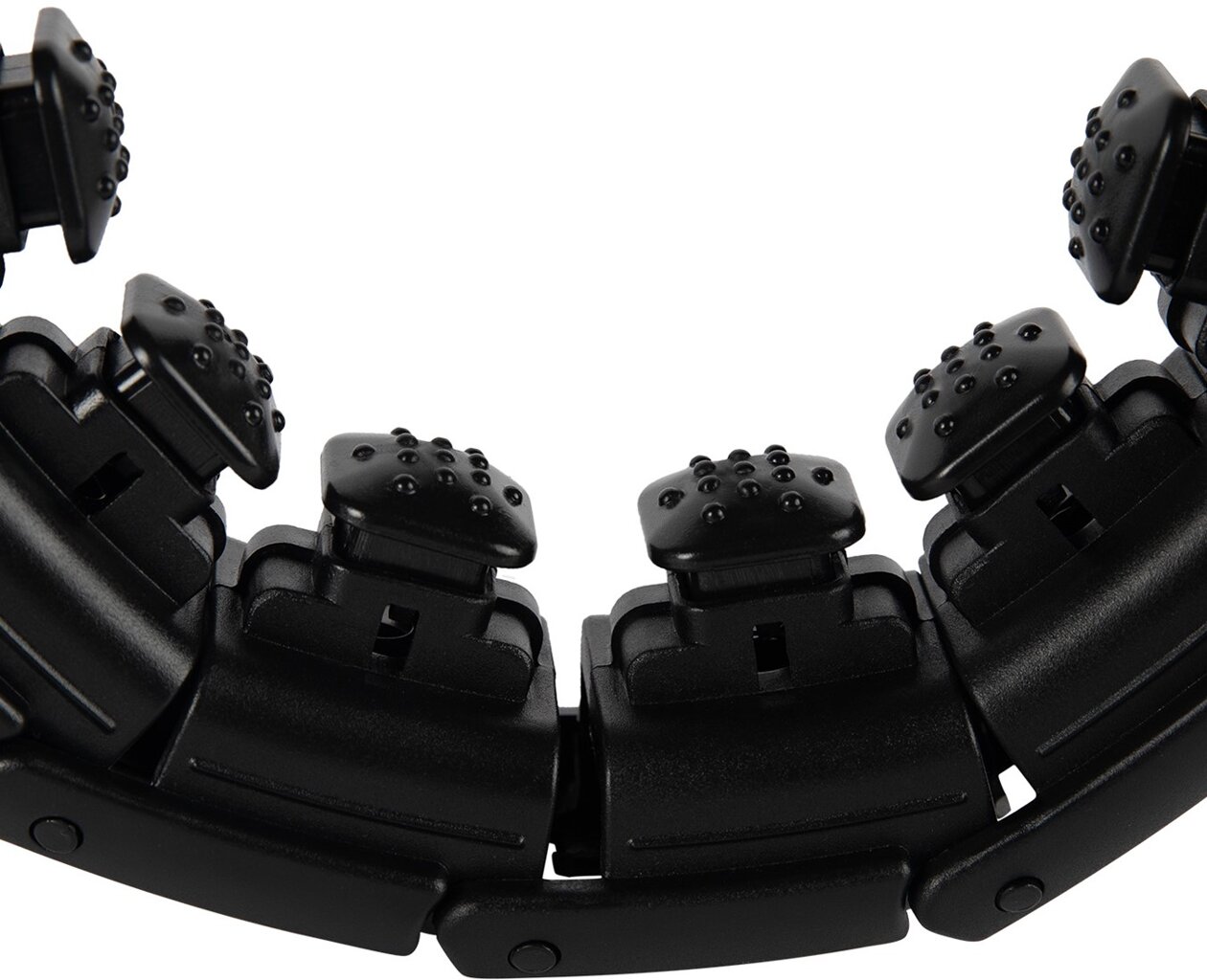 Obruč se skládá z 24 zacvakávacích dílů, které umožňují nastavit obvod od 80 do 132 cm. Díky tomu se přizpůsobí téměř každé postavě. Součástí je také přídavné závaží (1,4 kg) upevněné na nastavitelném provázku. Změnou jeho délky můžete snadno zvýšit nebo snížit intenzitu tréninku – kratší provázek znamená vyšší zátěž, delší naopak vyšší dynamiku.