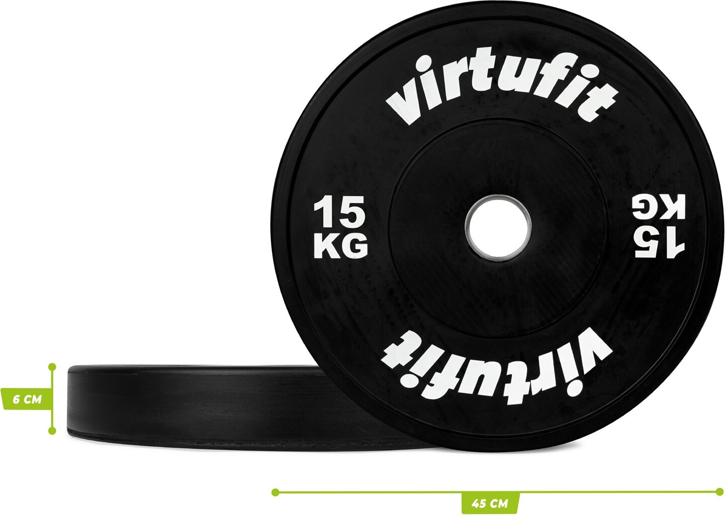 VIRTUFIT Hi-Temp Bumper Plate jsou vyrobeny ze 100% gumy a mají litinový vnitřní kroužek s průměrem 51 mm. Díky pevné gumě vydrží kotouče roky. Všechny kotouče mají stejný průměr, liší se však šířkou podle hmotnosti.