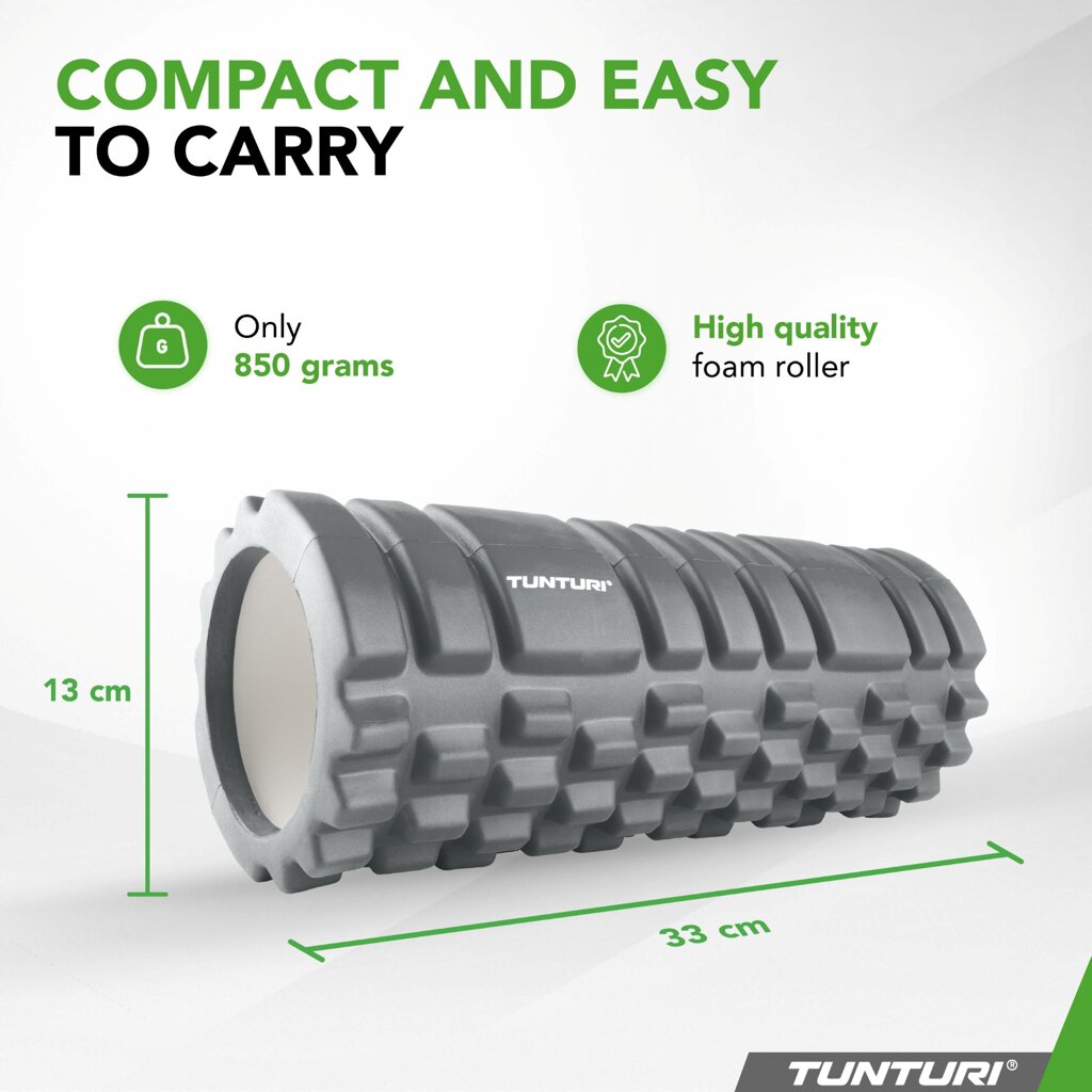 S délkou 33 cm a hmotností pouhých 850 g se válec snadno vejde do sportovní tašky a vezmete ho kamkoliv s sebou. Díky dutému vnitřku můžete uvnitř přepravovat např. ručník. EVA pěna s dlouhou životností poskytuje pevnou oporu, je hygienická a snadno omyvatelná. Výrobek je navržen pro každodenní používání i intenzivní tréninkové režimy.