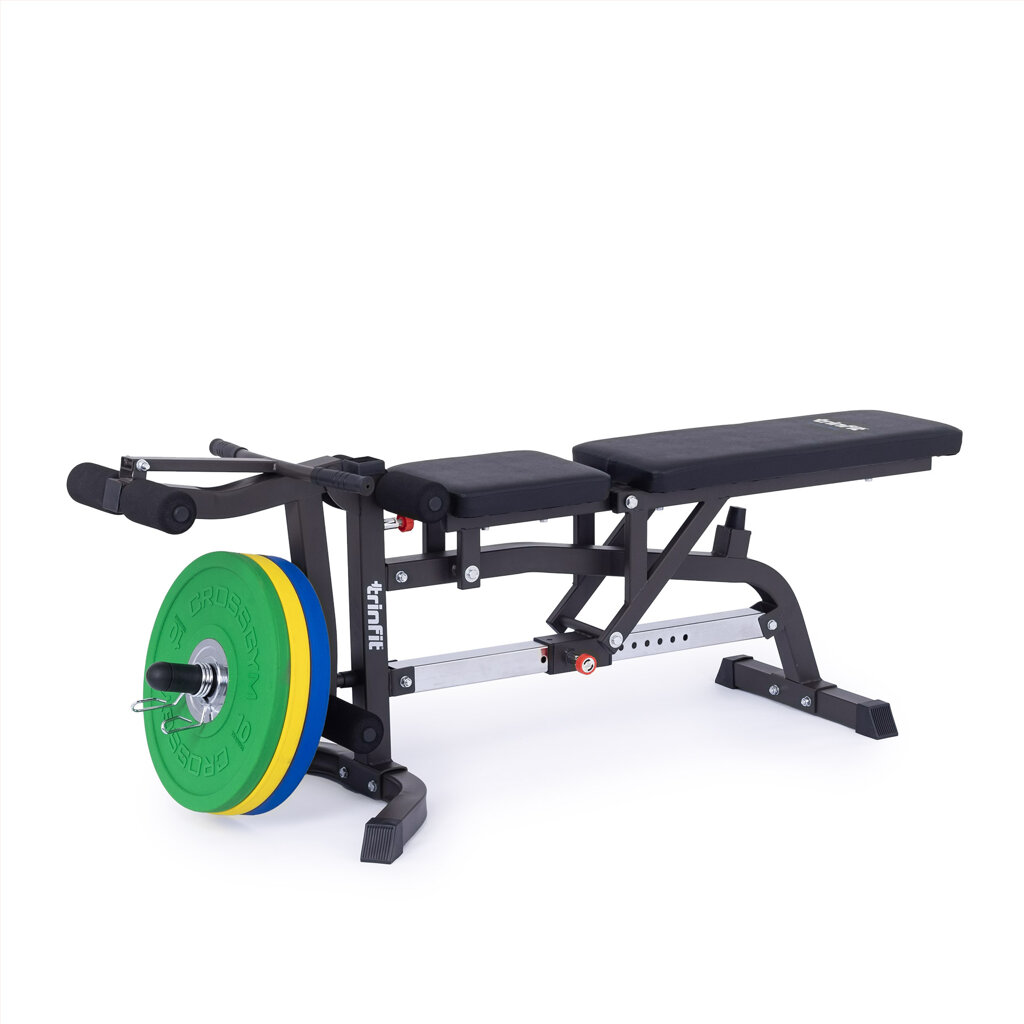 Posilovací lavice TRINFIT Vario LX5 je vybavena stanovištěm určeným pro izolované procvičení bicepsů a adaptérem pro zakopávání a předkopávání, kde zapojíte především přední část stehen (Quadricepsy) a zadní část stehen (Hamstringy). Závaží na tyto adaptéry pak aplikujete pomocí kotoučů v průměru 25 nebo 50 mm, průměr trnu si totiž můžete zvolit pomocí praktického nástavce o průměru 50 mm. Na samotné lavici v kombinaci s jednoručními činkami, či velkou osou pak perfektně procvičíte celé tělo.