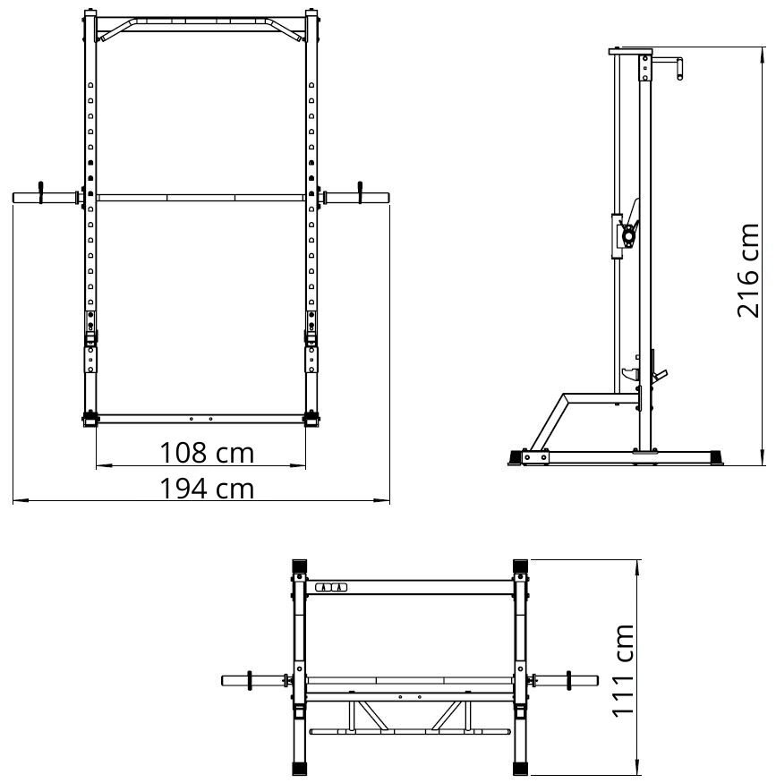 VIFITO Stojan s multipressem a hrazdou S25 je perfektní pomocník k procvičování celého těla, vhodný do domácího prostředí. Vertikální pohyb osy umožňuje provádět všechny komplexní cviky na celé tělo. Slouží pro bezpečné cvičení dřepů, bench pressu, výponů a mnoha dalších rozmanitých cviků pro budování svalstva.