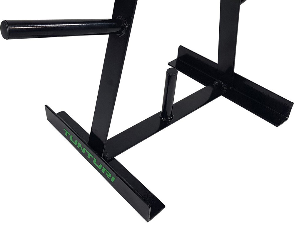 Odkládací stojan na kotouče 30 mm TUNTURI lze umístit ke zdi i volně do prostoru, a pokud potřebujete více úložného prostoru, můžete postavit několik stojanů vedle sebe. Nízká hmotnost usnadňuje manipulaci a odolná kovová konstrukce v černém provedení zajišťuje dlouhou životnost i elegantní vzhled. Hodí se jak do domácí posilovny, tak do profesionálního fitness centra.