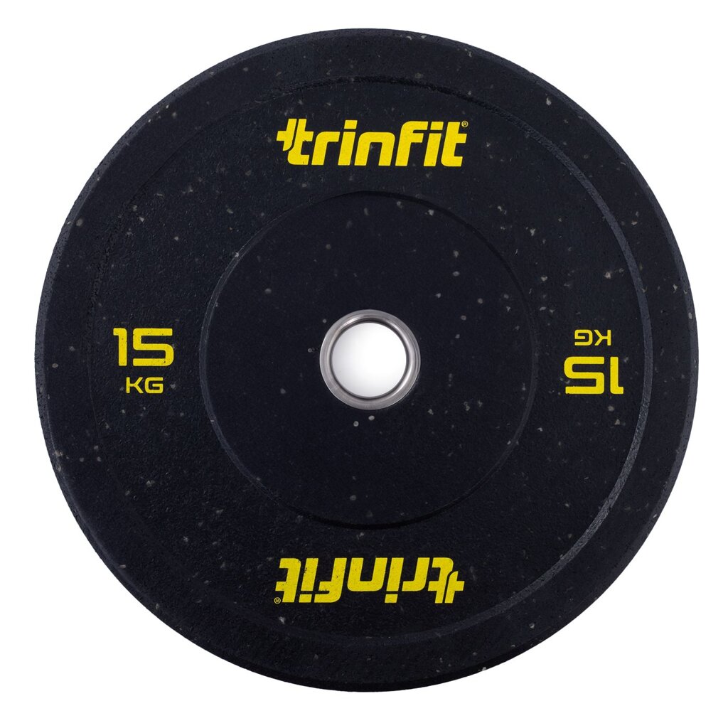 Set doplňují olympijské kotouče TRINFIT HI-TEMP, které jsou navrženy tak, aby obstály i při každodenním používání v crossfitových a komerčních posilovnách. Jsou vyrobeny z pevné směsi lisované pryže technologií Hi-Temp, při níž se materiál stlačuje pod vysokým tlakem a teplotou. Díky tomu vzniká mimořádně hustý a pružný povrch, který efektivně tlumí nárazy, snižuje hluk a odolává deformaci i při častém odhazování činky. Jemně zrnitá textura zlepšuje manipulaci a zajišťuje jistý úchop při přenášení. Vyšší odskok kotoučů zaručuje pružný, ale kontrolovaný dopad, ideální pro crossfitové a vzpěračské tréninky.