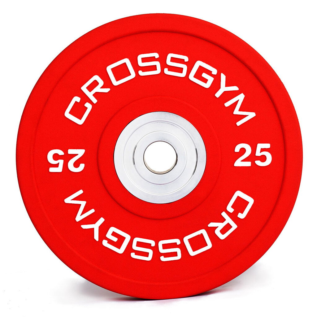 Tělo kotoučů je vyrobeno z pevné pryže s nerezovým ocelovým středem, který zaručuje hladké nasazování na osu a dlouhou životnost i při častém používání. Pryžový povrch se zúženým profilem zajišťuje lepší stabilitu při dopadu a menší tření při manipulaci s více naloženými kotouči. Kotouče jsou vyrobené s vysokou přesností, s hmotnostní odchylkou maximálně ±0,5 %, což zaručuje přesnost váhy a vyvážené rozložení při cvičení. Mají střední odskok – při dopadu se chovají přirozeně pružně, tlumí nárazy a současně zůstávají stabilní a pod kontrolou. Díky tomu poskytují optimální rovnováhu mezi ochranou podlahy, bezpečností a dynamickým charakterem tréninku.