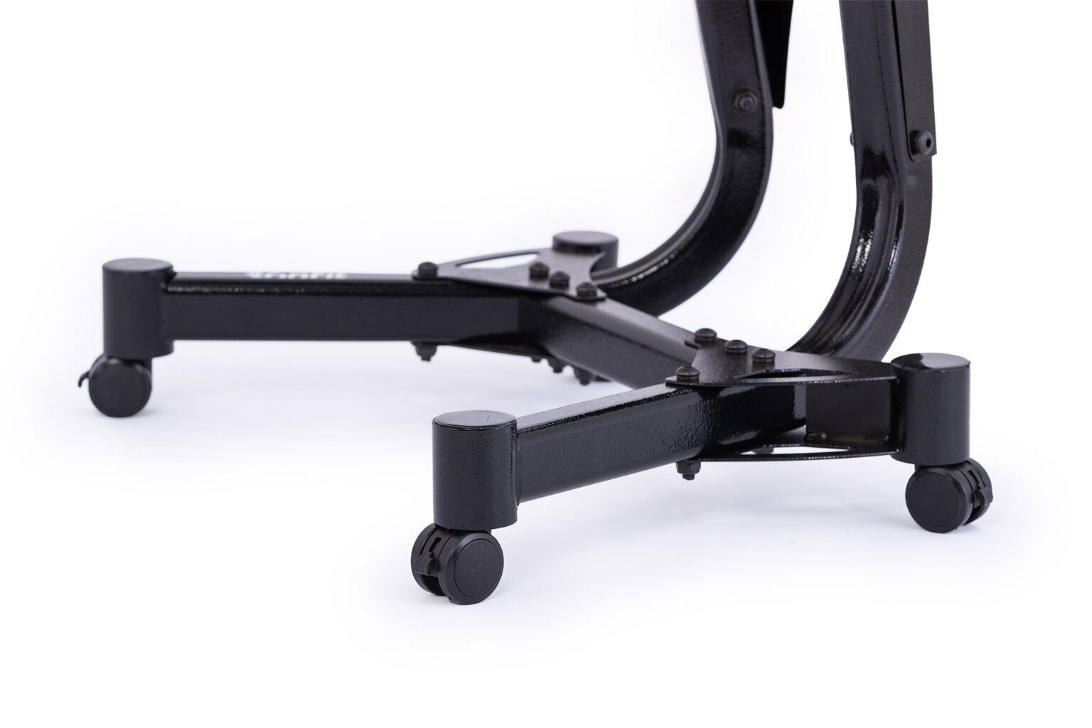 Konstrukce je lakována pomocí vypalované barvi, která je vysoce odolná vůči oděru, vlhku a agresivnímu potu. Díky kompaktním rozměrům, se stojan vejde takřka kamkoliv.