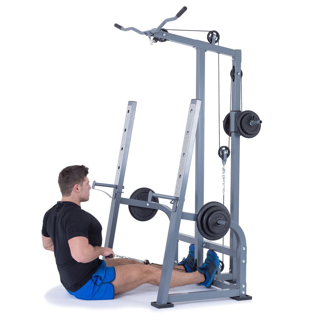 - modul horní kladky - modul stahování kladky shora umožňuje procvičení řady cviků jako je stahování horní kladky na zádové svaly, tricepsové stahování. Na rozdíl od většiny lavic je modul osazen 4 kolečkovými kladkami za sebou pro vaši optimální polohu při cvičení. Odpor je vytvářen prostřednictvím dvou nakládacích trnu s průměrem 25 mm (19 cm dlouhý).