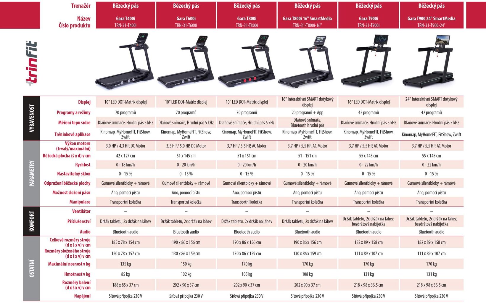 ZÁKLADNÍ VLASTNOSTI TRENAŽÉRU TRINFIT Gara T800i 16" Smartmedia: