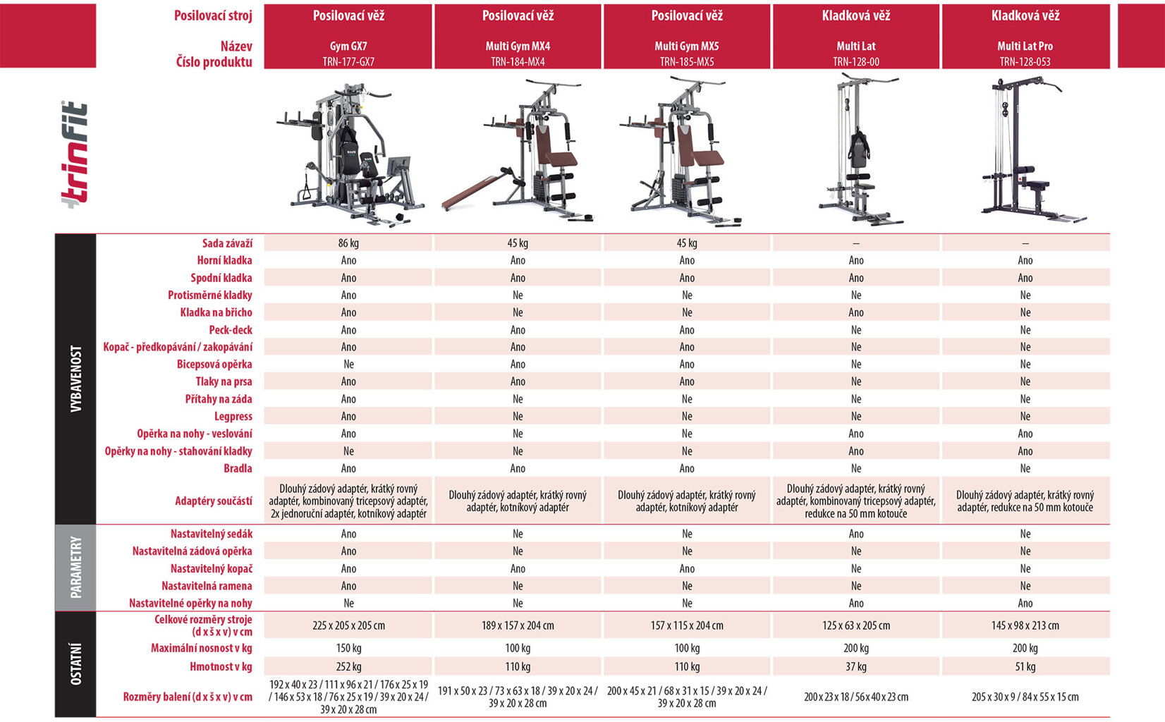 - Nosnost TRINFIT Gym GX3 je 130 kg