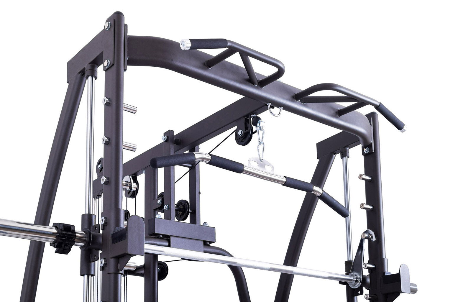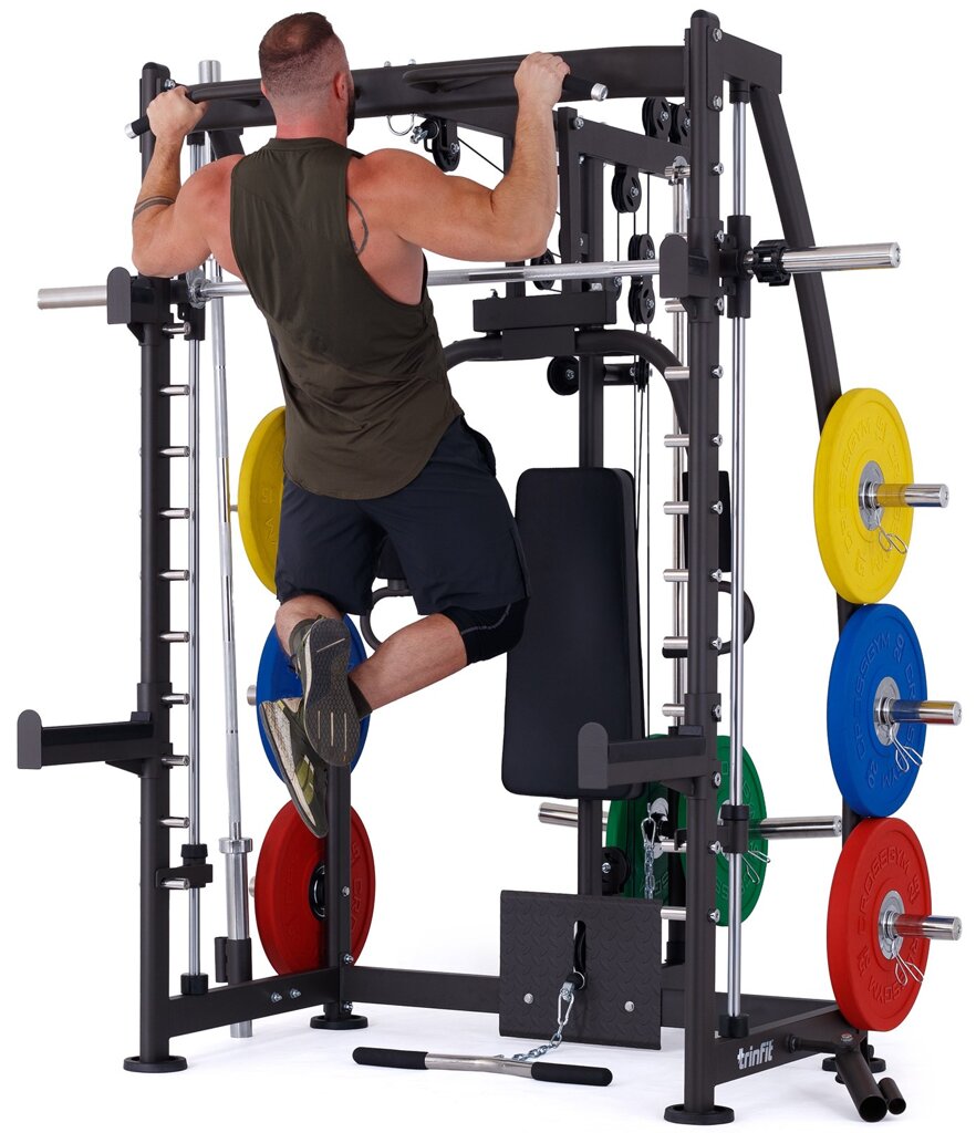 Univerzální posilovací stroj TRINFIT Multi Smith CX40 je stroj určený k procvičování celého těla vhodný do domácího a lehce komerčního prostředí. Na pouhých 4 m2 můžete odcvičit cviky téměř na všechny svalové partie. Vertikální pohyb osy umožňuje provádět všechny komplexní cviky. Slouží pro bezpečné cvičení dřepů, bench pressu, výponů a mnoha dalších cviků, nejen na kladkách, pro budování svalstva.