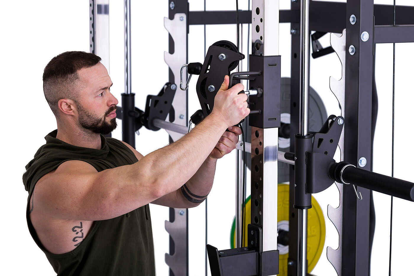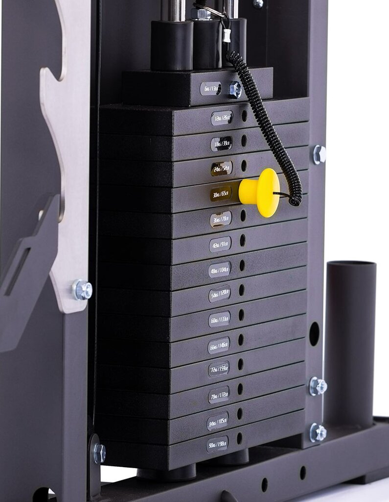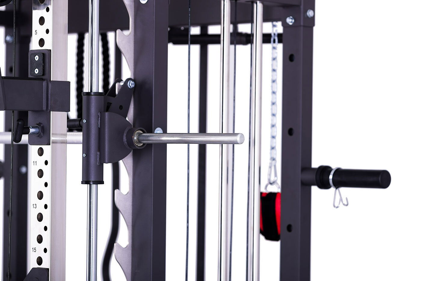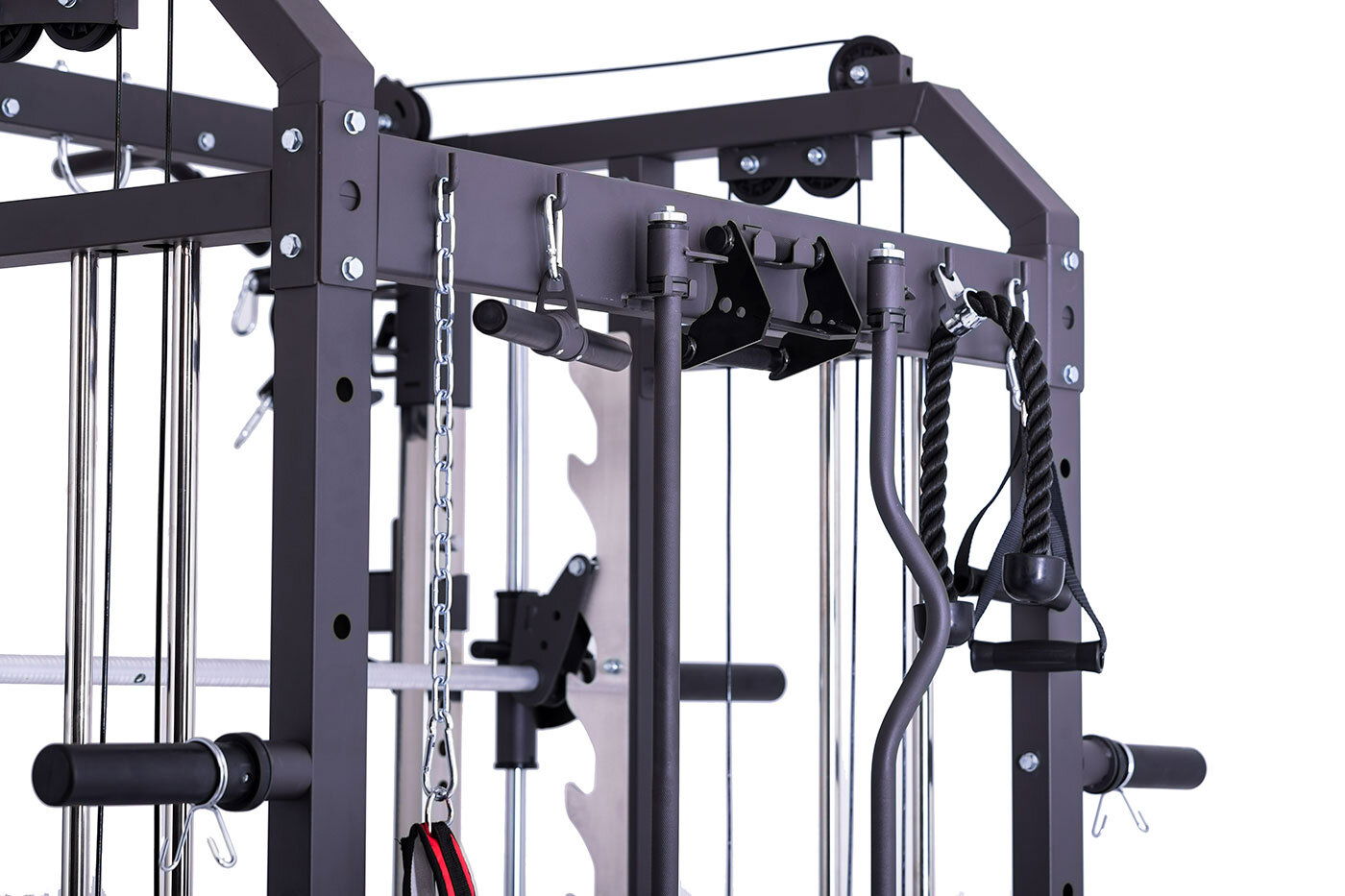 Multipress TRINFIT Multi Smith CX60 nabízí dva zásobníky zátěže o váze 2x 60 kg (dohromady tedy až 120 kg závaží!). Zároveň nabízí nepřeberné množství druhů cvičení formou tricepsových kliků, tlaků na prsa, ramena, kladek atd.. Dvě protisměrné kladky je možné polohovat v 30 výškových polohách a multipress ve 12 polohách, můžete tak perfektně procvičit celé tělo.