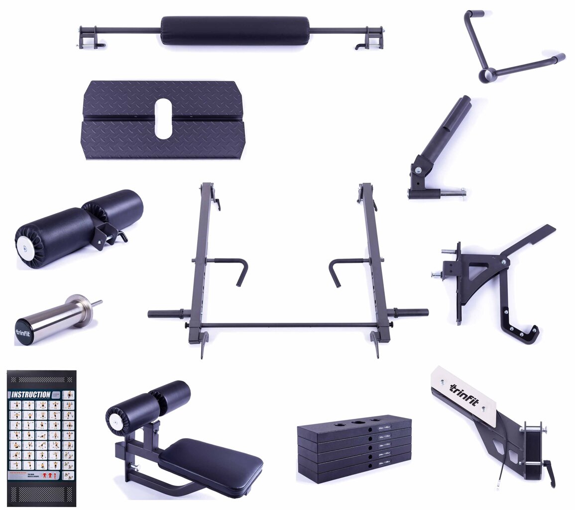 Lavice TRINFIT L5 Pro, která je součástí, má masivní ocelovou konstrukci z profilů 70x50x2 mm, silné odolné čalounění, a velký rozsah polohování, který zaručuje perfektní trénink takřka pro každého. Ať už jste začátečník, nebo pokročilý cvičenec, posilovací lavice TRINFIT Bench L5 Pro splní vaše očekávání. Zádová opěrka je nastavitelná do 8 poloh a sedák do 4 poloh, to vám zaručí maximální variabilitu pro cvičení svalů pod různými úhly.
