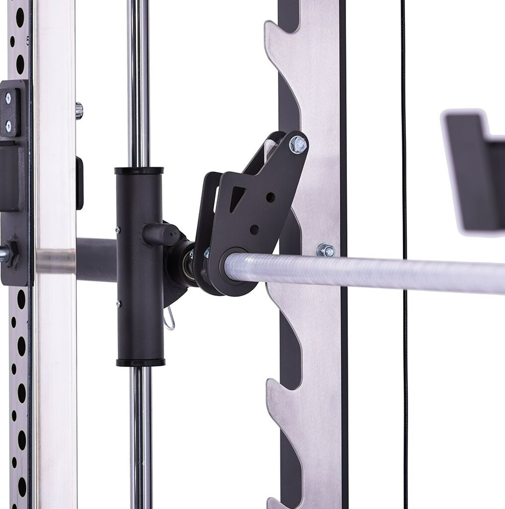 Model Multi Smith CX60 vyniká bezkonkurenční přirozenou ergonomií pohybu kladek, adaptérů a multipressu. Všechny kladky a multipress jsou osazeny kvalitními průmyslovými ložisky s mechanismem pro dopínání. Multipress jako závaží využívá kotouče s průměrem 25 mm nebo 50 mm a pro odložení kotoučů je po stranách klece celkem 8 odkládacích trnů.