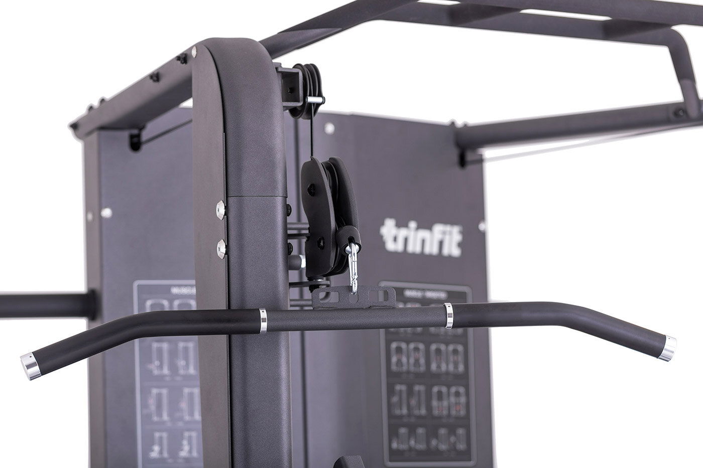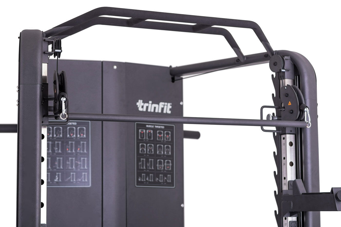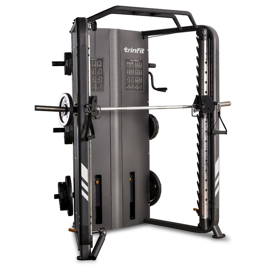Multipress TRINFIT Multi Smith CX70 nabízí dva zásobníky zátěže o váze 90 kg (dohromady tedy až 180 kg závaží!). Zároveň nabízí nepřeberné množství druhů cvičení formou tricepsových kliků, tlaků na prsa, ramena, kladek atd.. Dvě protisměrné kladky je možné polohovat v 17 výškových polohách, můžete tak perfektně procvičit celé tělo.