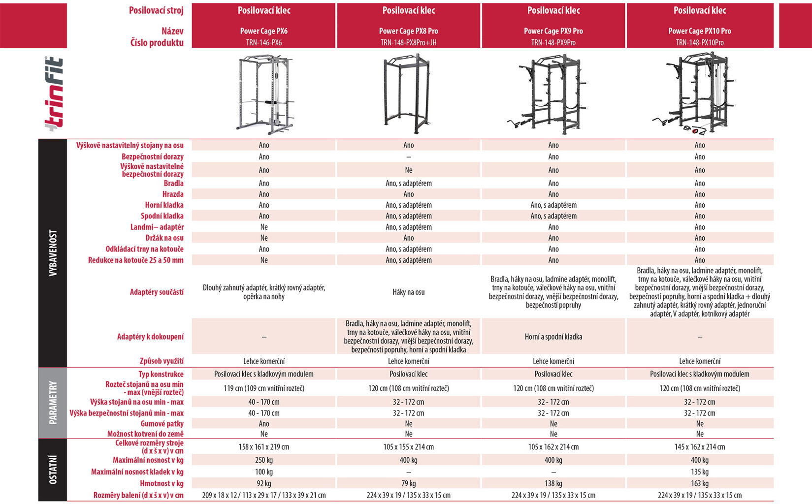 V naší nabídce najdete i posilovací klec TRINFIT Power Cage PX6 rozšířenou o horní a spodní kladku.