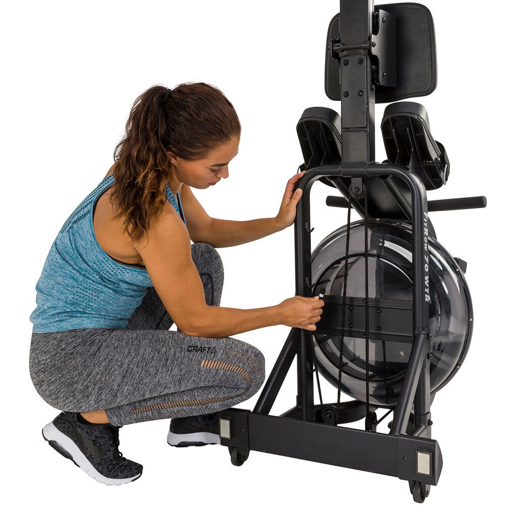 TUNTURI FitRow 70 je výkonný veslovací trenažér s přirozeným vodním odporem, který aktivuje všechny hlavní svalové skupiny a přináší realistický pocit veslování. Odpor se zvyšuje úměrně intenzitě vašeho záběru – čím rychleji a silněji veslujete, tím větší odpor cítíte. Přidáním vody do nádrže můžete ovlivnit základní sílu odporu a vytvořit si tak ideální tréninkové podmínky podle své kondice.