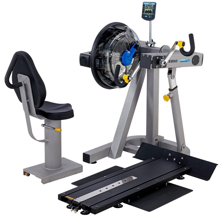 TUNTURI Fluid Exercise E850 Cycle UBE je profesionální horní ergometr (Upper Body Ergometer), který nabízí špičkový kardio i silový trénink pro horní polovinu těla. Díky promyšlené konstrukci, robustnímu rámu a patentovanému systému vodního odporu je stroj vhodný nejen pro náročné domácí uživatele, ale i pro profesionální fitness studia či rehabilitační zařízení. Odnímatelná sedačka navíc umožňuje pohodlné použití i pro osoby na invalidním vozíku. Přístroj je certifikován dle EU-MDR a splňuje náročné požadavky na medicínské využití.