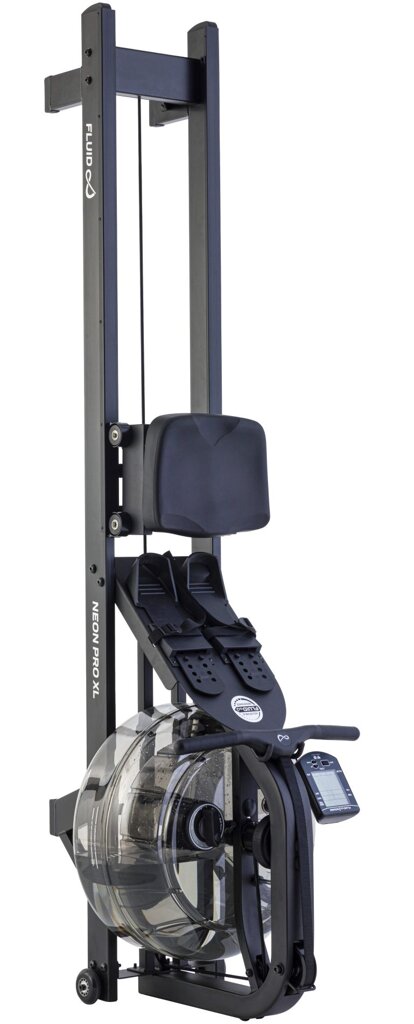 TUNTURI Fluid Rower Neon Pro XL Black je špičkový veslovací trenažér s vodním odporem, který díky extra velké nádrži XL Twin Tank nabízí o 65 % vyšší maximální zátěž než běžné modely. Robustní černý ocelový rám, moderní industriální vzhled a vyvýšené nohy pro snadný nástup jej předurčují nejen pro náročné domácí uživatele, ale i pro profesionální provozy.