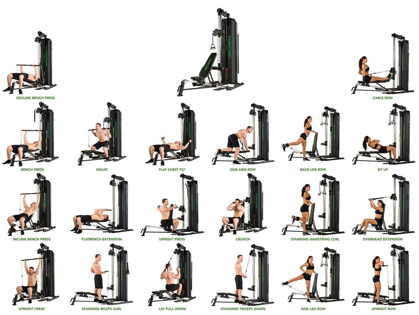 Díky volnému pohybu ramen je možné provádět cviky jako tlaky na prsa, peck-deck, přítahy, veslování, bicepsové zdvihy, leg press, kickbacky a mnoho dalších. Konstrukce je zhotovena z masivní oceli, čalounění má zesílené rohy a stabilitu zajišťují protiskluzové patky.