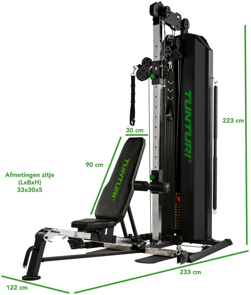 TUNTURI HG80 Home Gym je univerzální posilovací věž, která přináší kompletní možnosti tréninku přímo do vašeho domova. Díky robustní konstrukci, zásobníku závaží o hmotnosti 70 kg a polohovatelnému sedáku i zádové opěrce je ideálním řešením pro náročnější domácí cvičence i pro rehabilitační trénink.