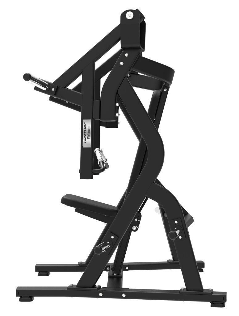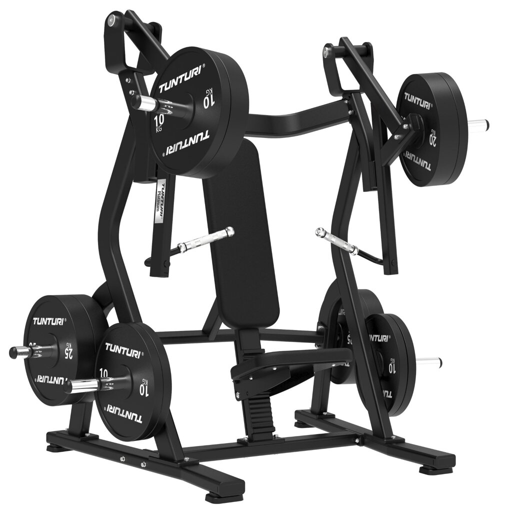 TUNTURI PLATINUM Chest Press V-series je robustní jednoúčelový posilovací stroj, který využívá unilaterální pohyb každé paže pro rovnoměrné zatížení a přirozený rozsah pohybu. Díky systému volného závaží umožňuje uživatelům trénovat s přirozeným odporem bez mechanického omezení, čímž podporuje efektivní a bezpečný rozvoj síly. Konstrukce je mimořádně odolná – vyrobena z ocelového profilu o tloušťce 2,5 mm - díky tomu lze odcvičit s váhou až 300 kg. Nosnost opěrky a sedáku je až 200 kg!
