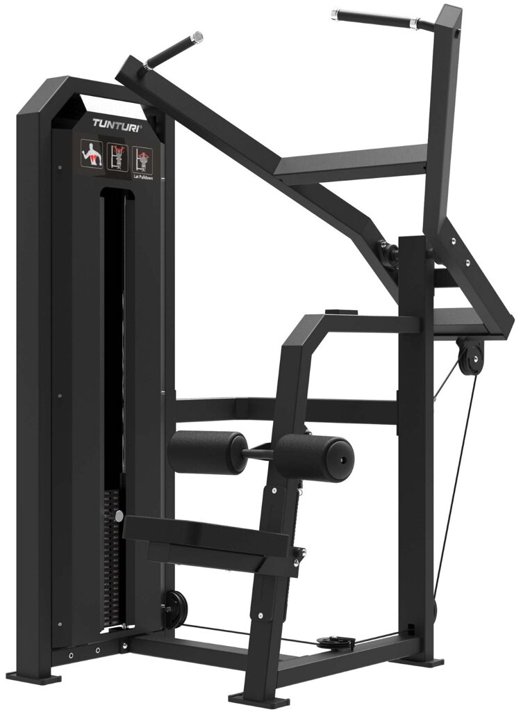 Profesionální stroj TUNTURI PLATINUM Lat Pulldown / přítahy na záda Selectorized V-series je určen pro efektivní posilování horní části zad, ramen a paží. Umožňuje přirozený vertikální tah směrem dolů, který maximálně aktivuje široký sval zádový a další zádové svalové partie. Díky ergonomickému provedení s plynulým chodem a širokým nastavením sedáku si správnou pozici najde každý uživatel, bez ohledu na výšku nebo zkušenosti. Stroj je vybaven cihličkovým závažím o hmotnosti 120 kg, s možností jemného nastavení po 2,5 nebo 5 kg.
