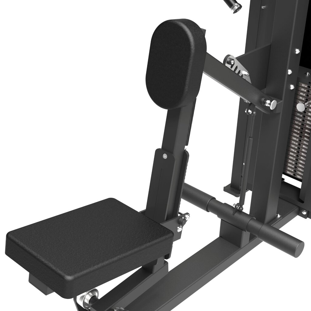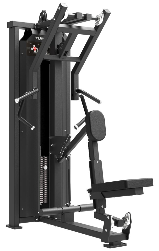 Robustní ocelová konstrukce s profilem o tloušťce 2,5 mm a závažím ve formě cihliček o váze 120 kg dělá z tohoto stroje nepostradatelnou součást každé profesionální posilovny.
