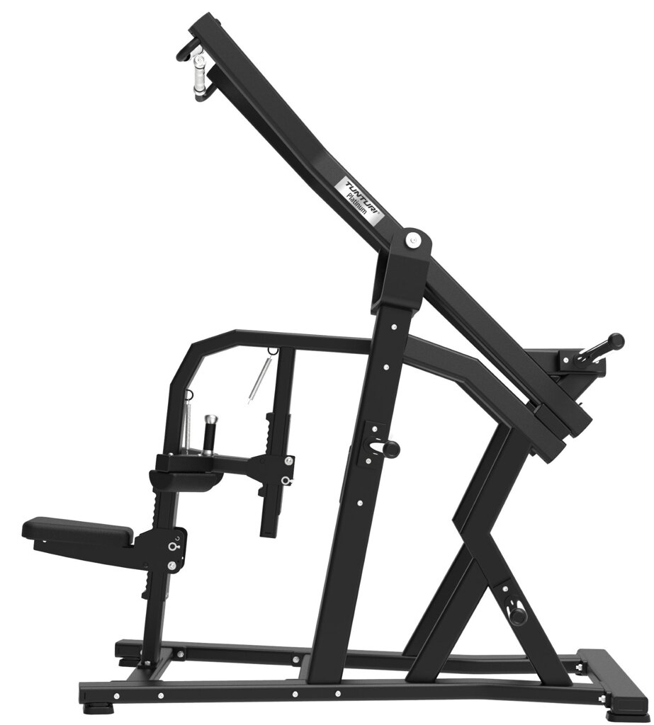 Profesionální posilovací troj TUNTURI Platinum Wide Lat Pulldown z řady V-Series je navržen pro intenzivní procvičení širokého zádového svalstva s důrazem na latissimy a horní část zad. Díky širokému úchopu a vedenému tahu simuluje klasické přítahy shora, přičemž minimalizuje únavu paží a zajišťuje maximální zapojení cílových svalových skupin. Izo-laterální pohyb ramen podporuje rovnoměrné zapojení obou stran těla, čímž přispívá k vyváženému rozvoji síly.