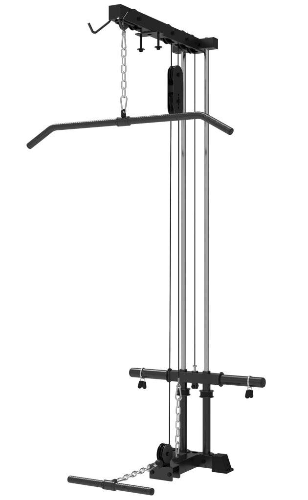 Součástí sestavy je profesionální kladkový modul, který se montuje přímo na zadní část konstrukce a zabírá minimum prostoru. Nabízí horní a dolní kladku s plynulým chodem, přesným vedením lanka a ložiskovými kladkami. Díky kompatibilitě s kotouči 25 mm i 50 mm můžete použít běžné závaží, které už doma máte. V balení najdete také široký a rovný adaptér, držák na zavěšení adaptéru i redukce pro užší kotouče.