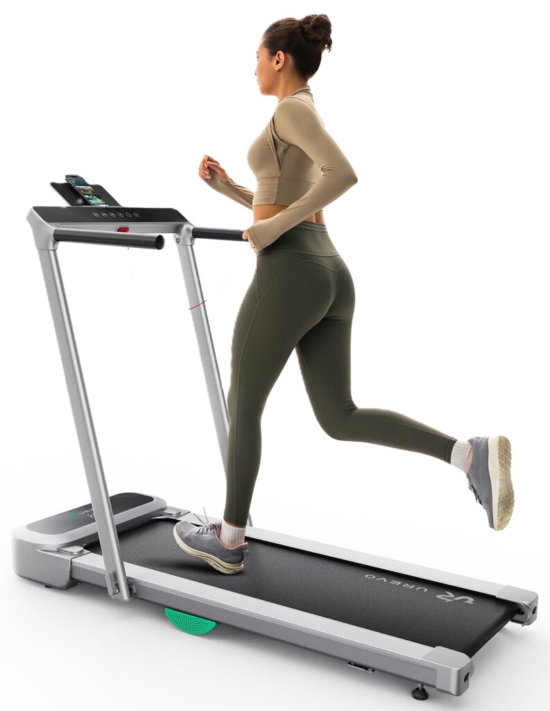 Běžecký pás UREVO FoldiMIX 5 Pro je moderní domácí trenažér, který v sobě spojuje elegantní design, kompaktní rozměry a tichý provoz. Díky 2-in-1 konstrukci umožňuje trénink chůze i běhu, přičemž po složení má výšku pouhých 14 cm – snadno jej tedy uložíte pod postel, za skříň nebo pohovku. Pás je vybaven dvojicí výkonných bezkartáčových motorů s celkovým výkonem 3 HP, které zaručují plynulý chod, vysokou životnost a rychlost až 13,4 km/h.