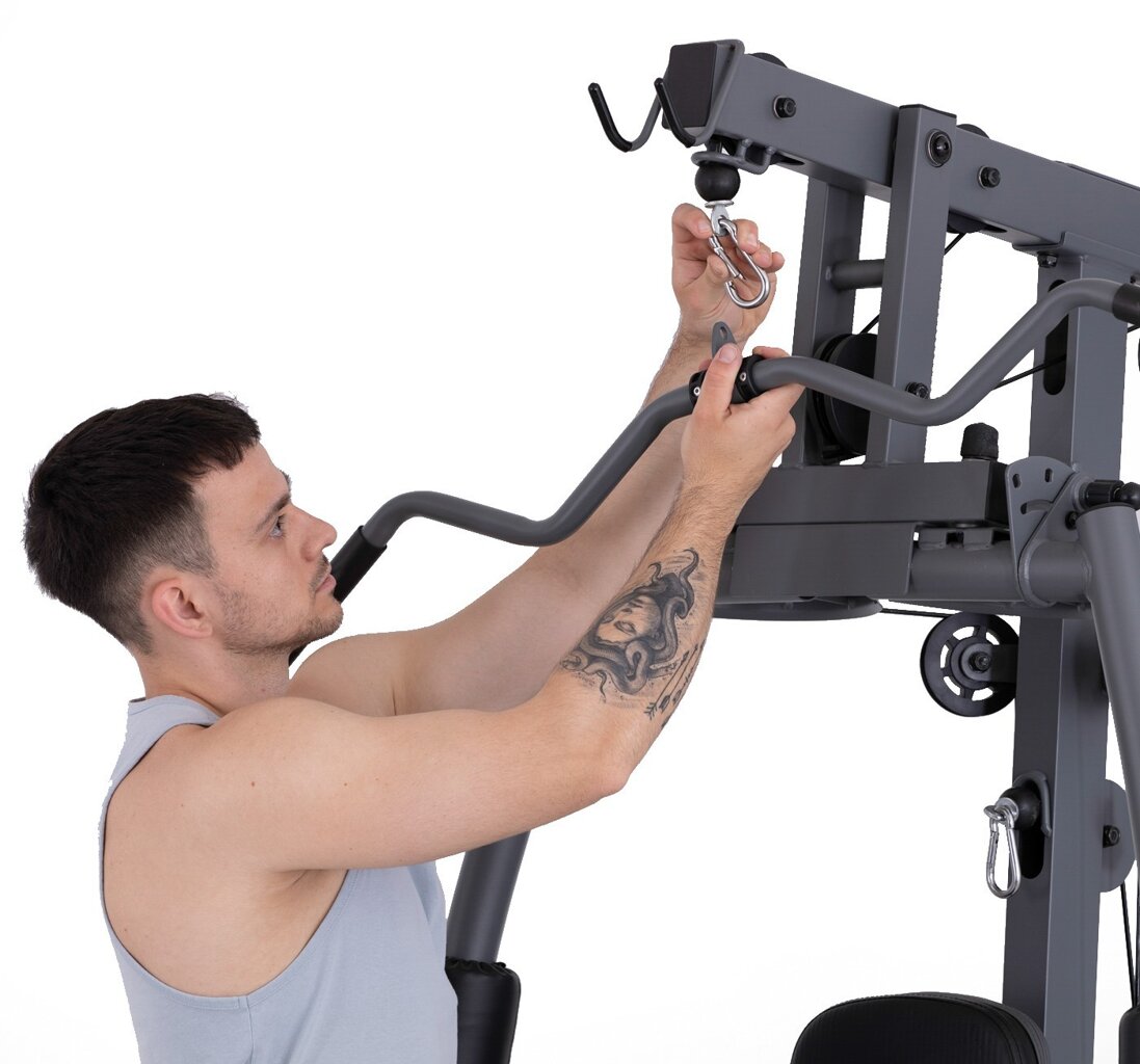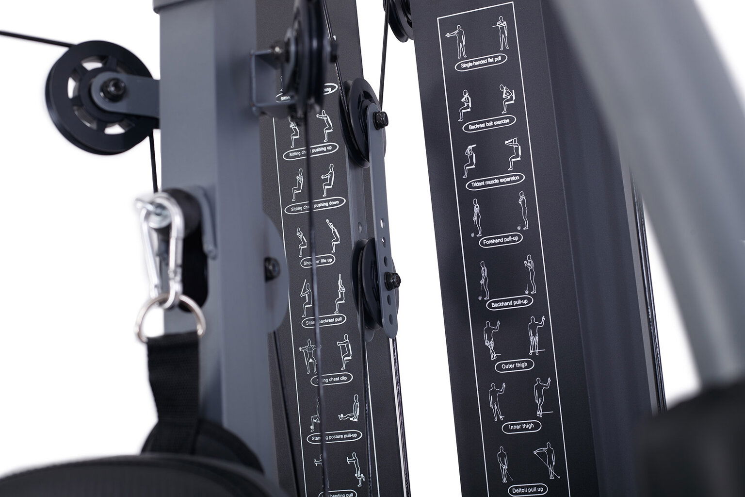 Multifunkčnost jednotlivých stanovišť dovoluje procvičit většinu svalových partií, věž disponuje snadno ovladatelným nastavením zátěže (pomocí kolíku).