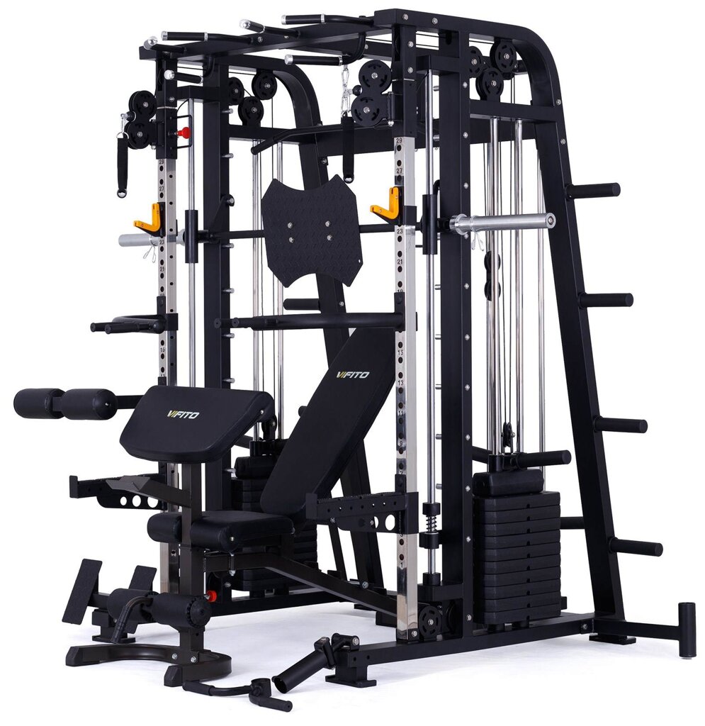 Multipress VIFITO Omega S70 nabízí dva zásobníky zátěže o váze 60 kg (dohromady tedy až 120 kg závaží!). Zároveň nabízí řadu posilovacích odnímatelných adaptérů např. tricepsových kliků, tlaků na prsa, ramena, kladek atd.. Dvě protisměrné kladky je možné polohovat v různých výškových polohách, můžete tak perfektně procvičit celé tělo.