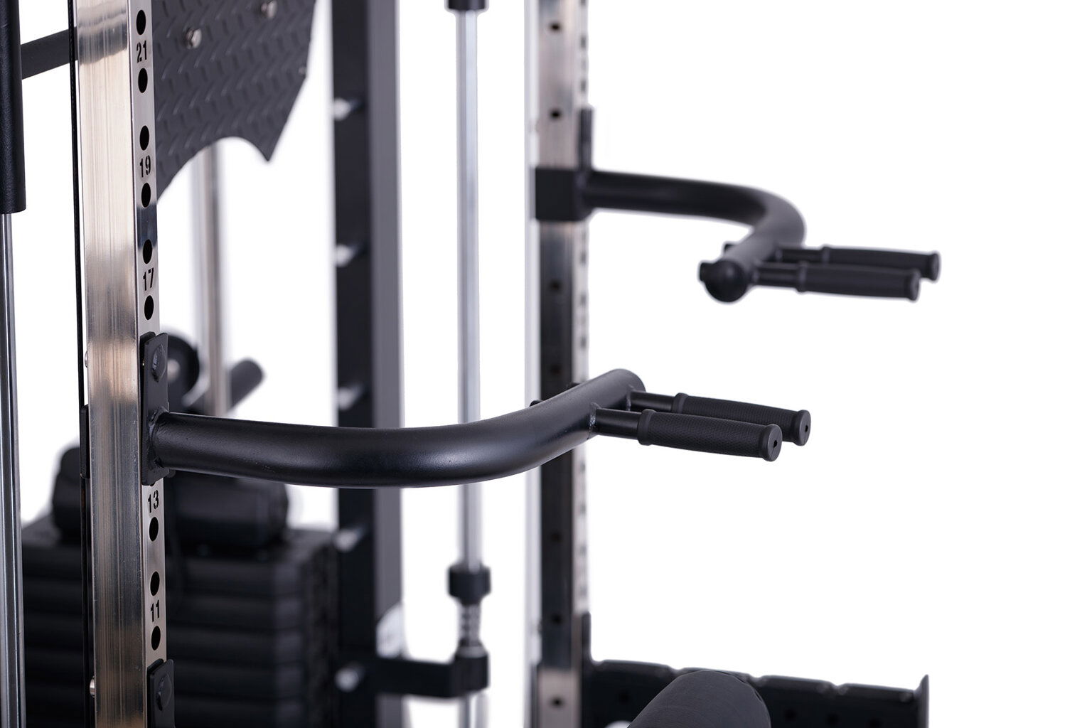 - Možnosti nastavení Nastavitelná výška stojanů, Možnost posuvu lavice vůči stojanu, Nastavitelný peck-deck, Nastavitelné opěrky na nohy