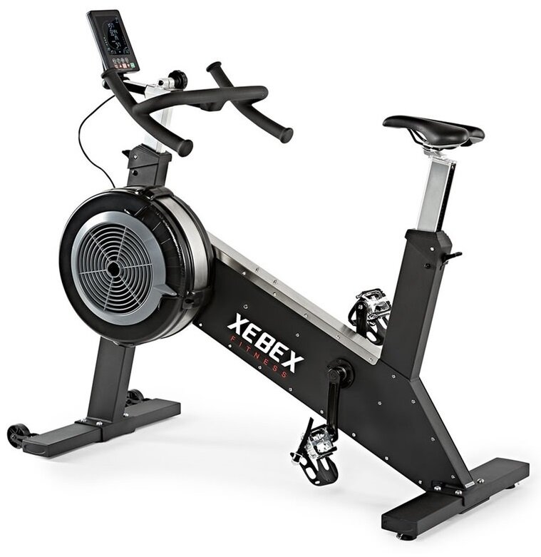 Cyklotrenažér XEBEX Air CYCLE Smart Connect disponuje počítačem s bluetooth připojením, transportními kolečky a vyrovnávači nerovnosti.
